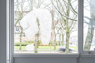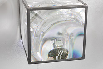 TEXTS (2021) was a group show initiated by Mitch Thar. An excerpt by Alina Lupu: --------------------------------------------------------------------------- I walked back down to the project space where Michelle Son and her works were waiting. Two works - one pre and one during corona times - bookending a year. Exercises in language and perception. Michelle was interested in experimenting with magnification lenses which were originally designed for light houses. Curious to see how they functioned and to understand how light is refracted through multiple layers of magnification, she produced casts of objects that surrounded her, specifically cosmetic and domestic objects like face creams, vitamin bottles, lichees, eggs and walnuts. Fragments of these objects were cast in transparent resin and dried flowers; building on a collection of pastel coloured “see-through” things. Some objects had objects inside of them. She then decided to build a vitrine lined with the magnification lenses, working to their given dimensions. “The moment I had placed the objects inside and took a step back, I experienced something that both startled and excited me at the same time. The inner world of the contained objects seemed to shape-shift like a playhouse of scale and form, possessing its own set of rules and complexity. A moment of phys-fi, a moment in which physics and fiction could exist,” she added. The vitrines induced blind spots, making objects not always visible from every angle. Based on your height, movement and positioning, the vitrines could play like a personal film, a nod to the early beginnings of cinema, projection and magic lanterns, a mental experience of enigmatic images. From a certain angle, putting one’s head in between the vitrines, the outside world flipped upside down. They were blown up slices of reality. A little bit of magic. Her other piece was of a different nature altogether, a return to language that forms part of her current ongoing project: “Study for a new alphabet” which started during the first lock down. This began as a collection of intuitively hand- draw glyphs, one of which was given attention to for the show. This resulted in a large-scale symbol attached to one of the windows in the space, making it visible from within and outside of the building. Illuminated by the natural light and time of day, slight pink and purple hues could be seen from certain angles. Michelle’s finger tips pressing down on the shape in her process of making were visible from up close. A symbol that expressed an alternative form of communication and connection. SOFTDELAY.NL
