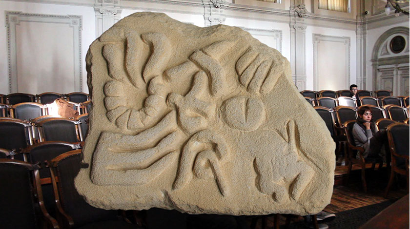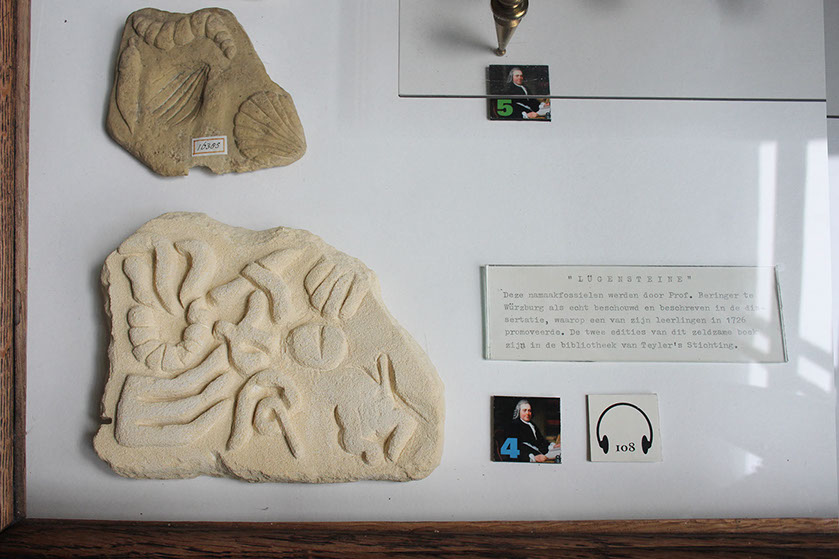Mutter (2015) Teylers Museum, Haarlem (NL) Performance intervention Based on a set of fossils found in the permanent collection of the Teylers Museum, Mutter is an anti-play, written and performed as a phone conversation which interrupted a public event in the main hall of the museum. While audience members unexpectedly eavesdropped on a private call between a man and his mother, his story behind the collection of fabricated fossils was revealed. The story of Johan Beringer and his lugensteine or “lying stones” is one of history’s earlier examples of fake news. In exploring his original thesis in the archives of the museum, I fabricated my own version of the lugensteine encrypted with the word “mutter”. This stone was placed in the vitrine next to the original stones for the exhibition Historical Materialisms. Special thanks to Jakob Ehrlich, Clare Butcher, Jasper Coppes, Yvonne Dröge Wendel and the Rietveld Academy, Herman Voogd and Ewout Koek of the Teylers Museum.
